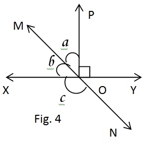 आकृति 4 में रेखाएं XY तथा MN एक दुसरे को बिंदु O पर प्रतिच्छेद करती है|