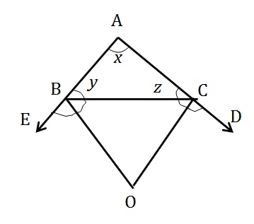 गया है | यदि ∠CBE और ∠BCD के कोण समद्विभाजकक्रमश: BO तथा CO